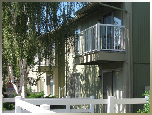 Shadow Gardens consists of two four-plex buildings surrounded by mature shade trees. Each upper-level apartment has balconies both front and back. Lower level units have a small front garden area plus a patio deck in the back yard. The grassed area is maintained by management to insure a neat, pleasant area for tenants.